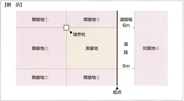 測量地と道路・水路の境界線が道路・水路の規定幅員の起点となり対面土地の道路・水路との境界線に影響を及ぼすからです。