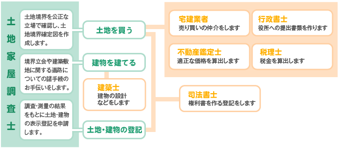 土地業務については、現況測量(仮測量)し計算・図化、境界位置の検討を行います。
